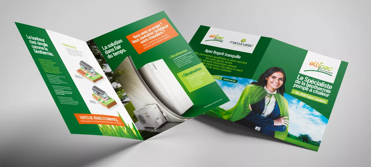 L’agence signe un nouveau territoire de marque et valorise les vertus de la société implantée à deux pas du Puy en Velay. Visuels aériens emplis de nature et de bien-être, la nouvelle communication opérationnelle met en lumière les avantages des techniques de chauffage et climatisation proposées par Altipac Géothermie.Dans le même temps, l’agence assure la création du nouveau stand de la marque avec un esprit original et convivial. Ce dernier sera utilisé pour la première fois lors du salon de l’habitat et de Monistrol sur Loire. Les nouveaux codes de la communication de la société joue d’un esprit contemporain et positionne les énergies renouvelables au cœur du projet.