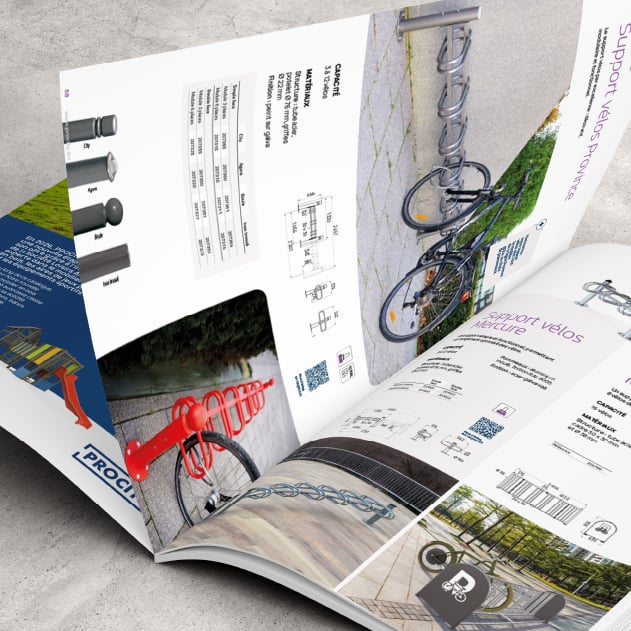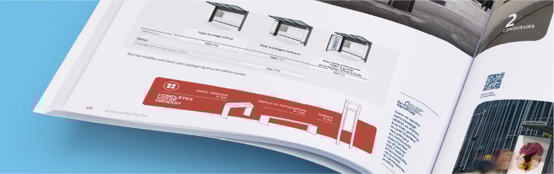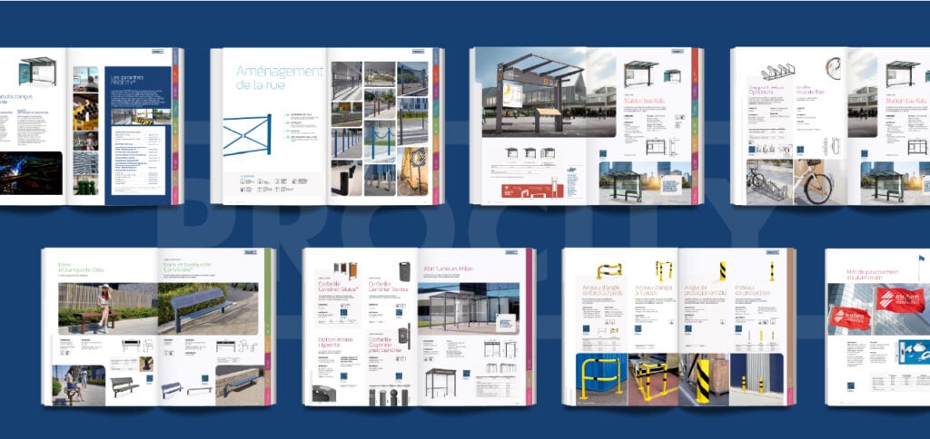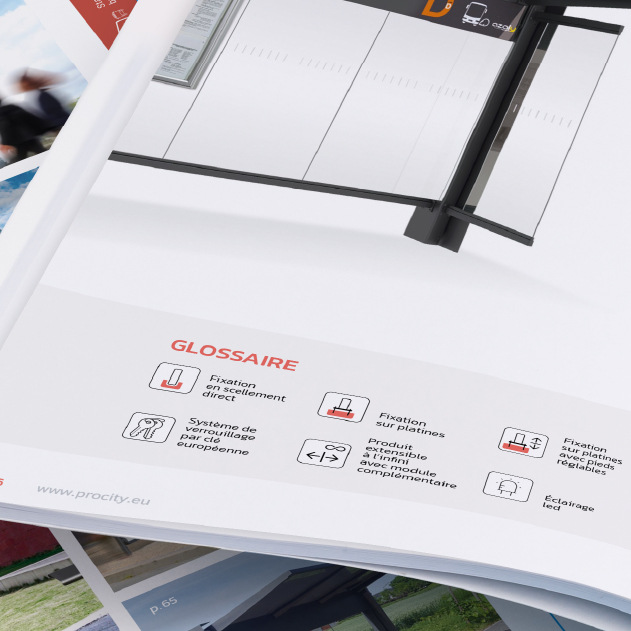 En tant que leader européen du mobilier urbain, Procity doit avoir un catalogue à son image. Aussi, nous avons opté pour une approche graphique qui reflète son expertise et sa technicité à chaque page.