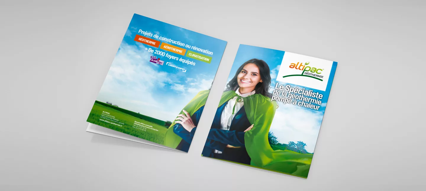 L’agence signe un nouveau territoire de marque et valorise les vertus de la société implantée à deux pas du Puy en Velay. Visuels aériens emplis de nature et de bien-être, la nouvelle communication opérationnelle met en lumière les avantages des techniques de chauffage et climatisation proposées par Altipac Géothermie.Dans le même temps, l’agence assure la création du nouveau stand de la marque avec un esprit original et convivial. Ce dernier sera utilisé pour la première fois lors du salon de l’habitat et de Monistrol sur Loire. Les nouveaux codes de la communication de la société joue d’un esprit contemporain et positionne les énergies renouvelables au cœur du projet.