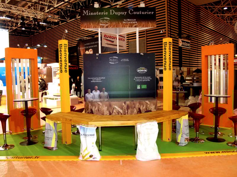 Plaquettes en anglais, en espagnol, en français et création d’un stand qui hume bon l’odeur du pain comme on l’aime, l’agence 32 Décembre joue la carte des valeurs de la Minoterie Dupuy Couturier : authenticité, tradition, savoir-faire et production industrielle.