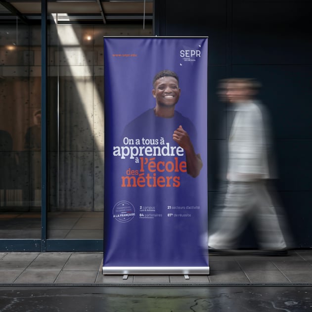 L’agence s’engage aux côtés de la SEPR au travers d’une campagne de recrutement punchy destinée aux élèves et aux entreprises. Fort de son message « On a tous à apprendre à l’école des métiers », la campagne porte haut les valeurs humanistes de l’école qui a fêté ses 160 ans en 2024.