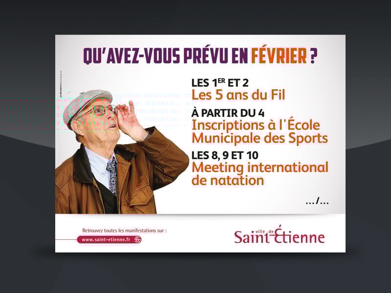 La nouvelle campagne de communication pour les événements de la Ville de Saint-Etienne est actuellement affichée sur le réseau 4X3 stéphanois pour le mois de Février.