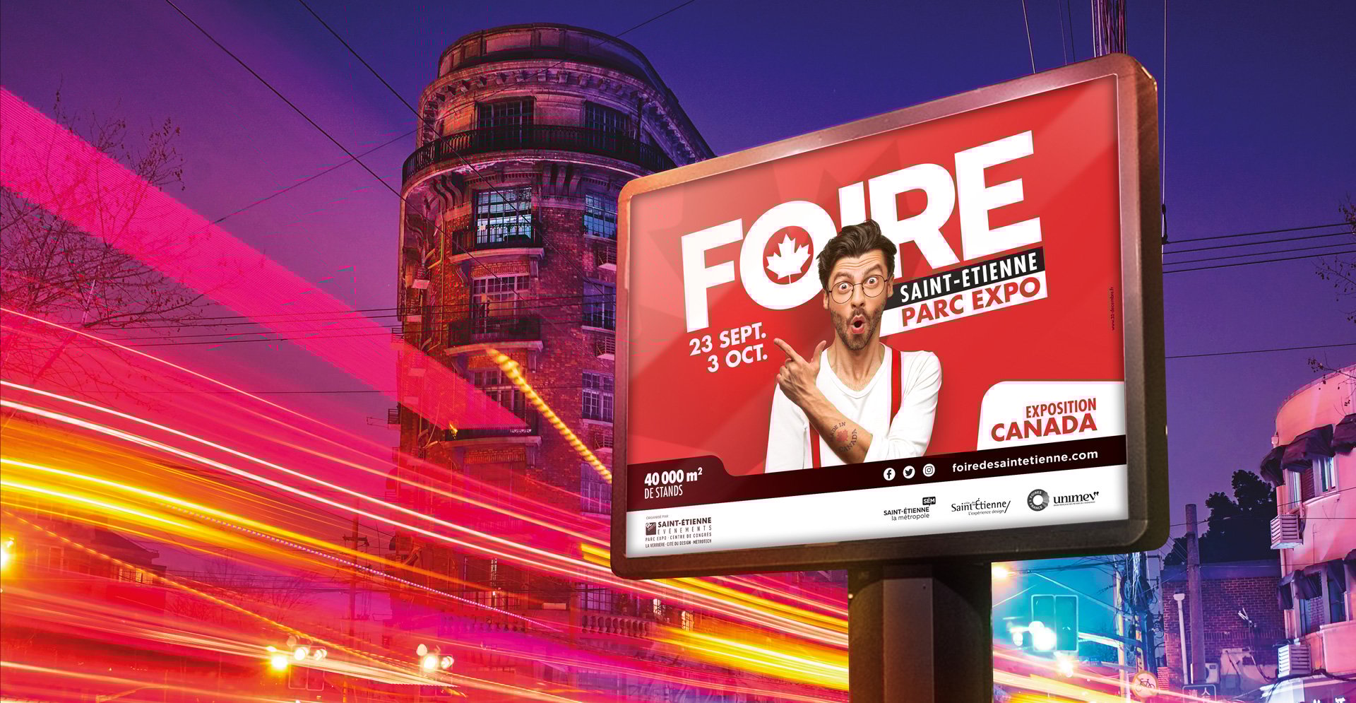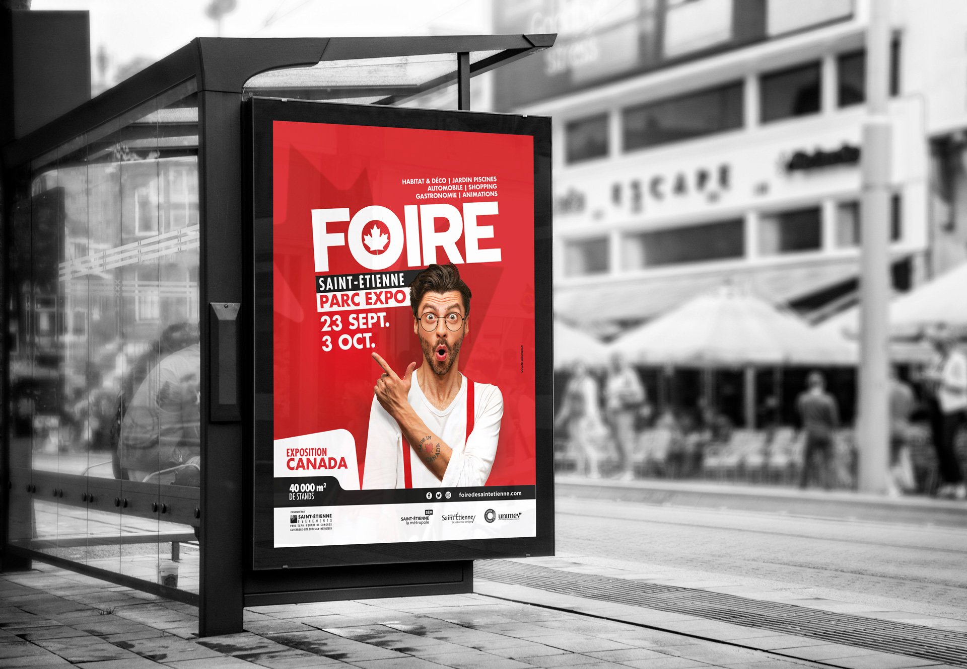Avec pour thématique le Canada, la Foire de Saint-Etienne revient fin septembre. Evénement phare du paysage commercial grand public de la métropole, la Foire de Saint-Etienne retient pour la 3ème année de suite le concept de communication imaginé par l’agence. Une création jouant d’impact et de reconnaissance.