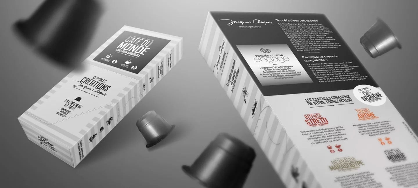 Création de la gamme packaging des capsules Cafés Chapuis.