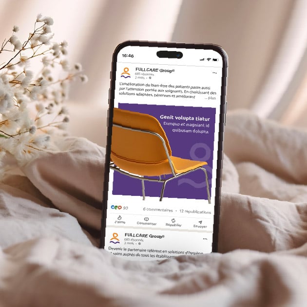 Partenaire fiable et humain, Fullcare Group possède de solides valeurs d’entreprise et une ligne de conduite qui consiste à faciliter la vie des patients et des soignants. Dans un univers de concurrence forte, il nous fallait en termes de branding, de ton et de positionnement sortir du lot.