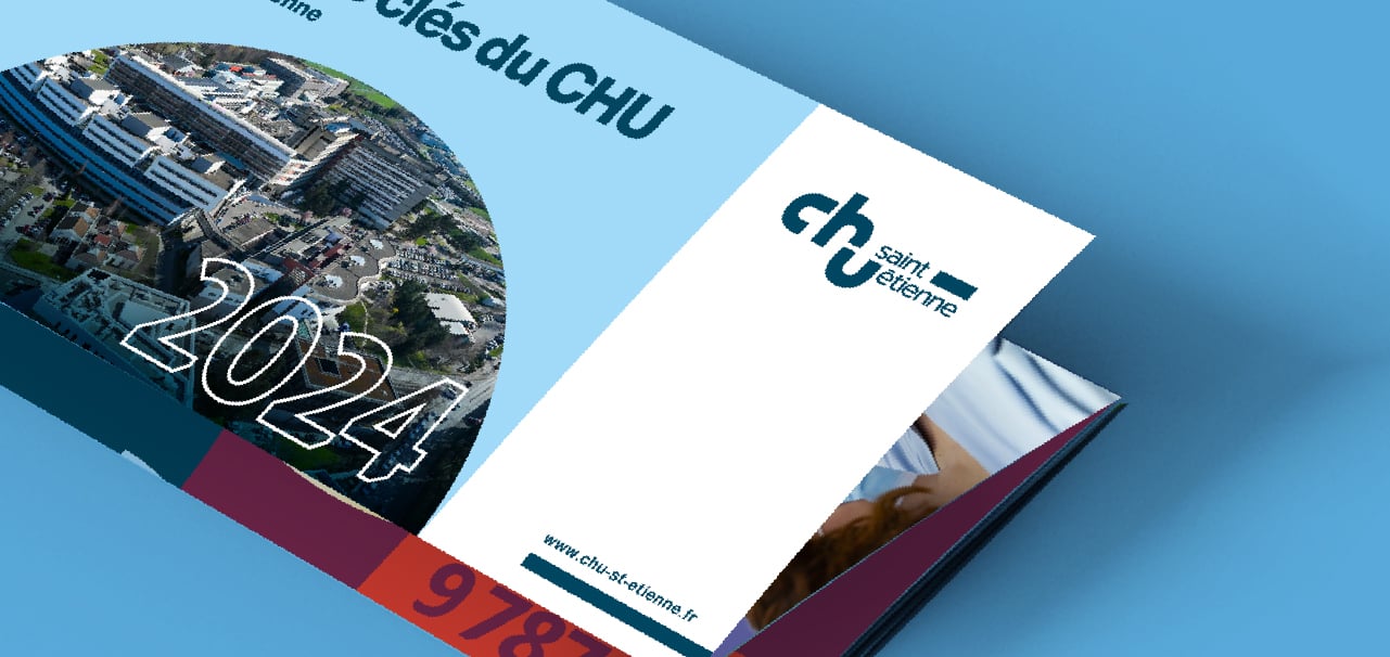 L’agence signe la création de la plaquette des chiffres clés du CHU de Saint-Etienne.
