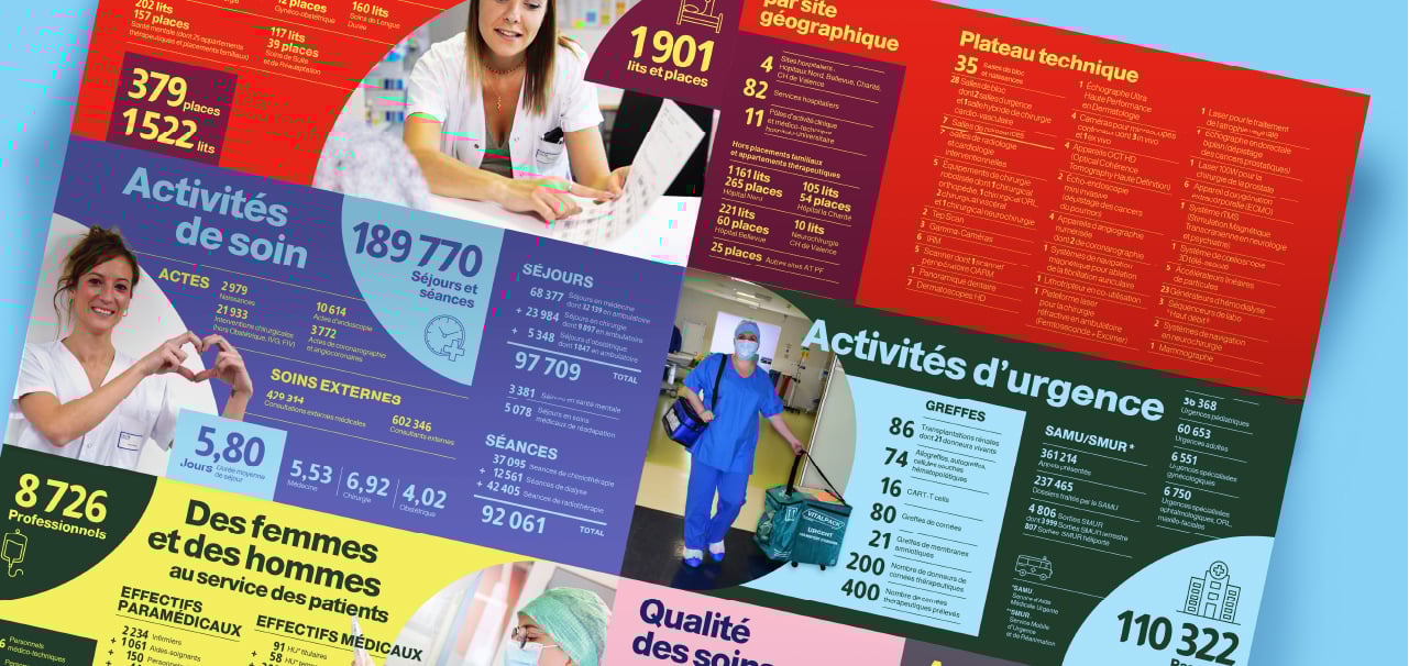 Création de la plaquette chiffres clés du CHU de Saint-Etienne.