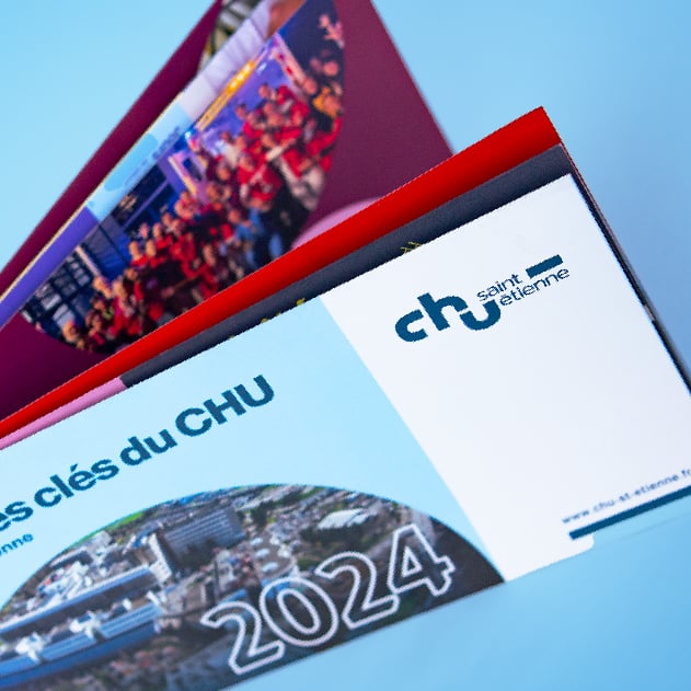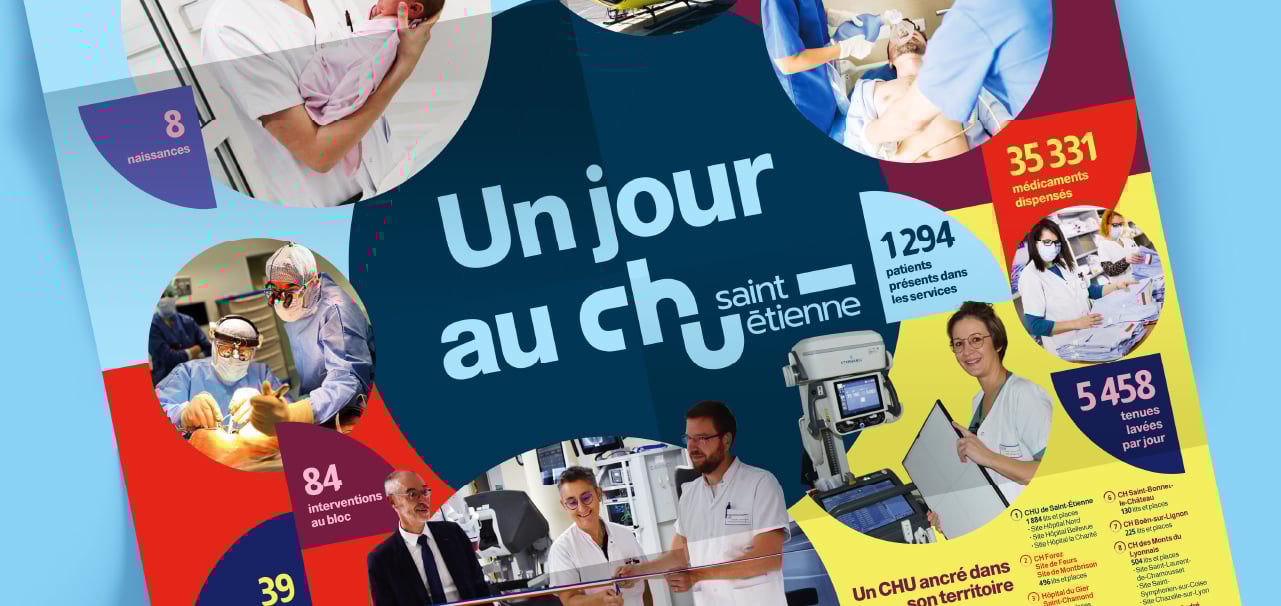 L’agence signe la création de la plaquette des chiffres clés du CHU de Saint-Etienne.