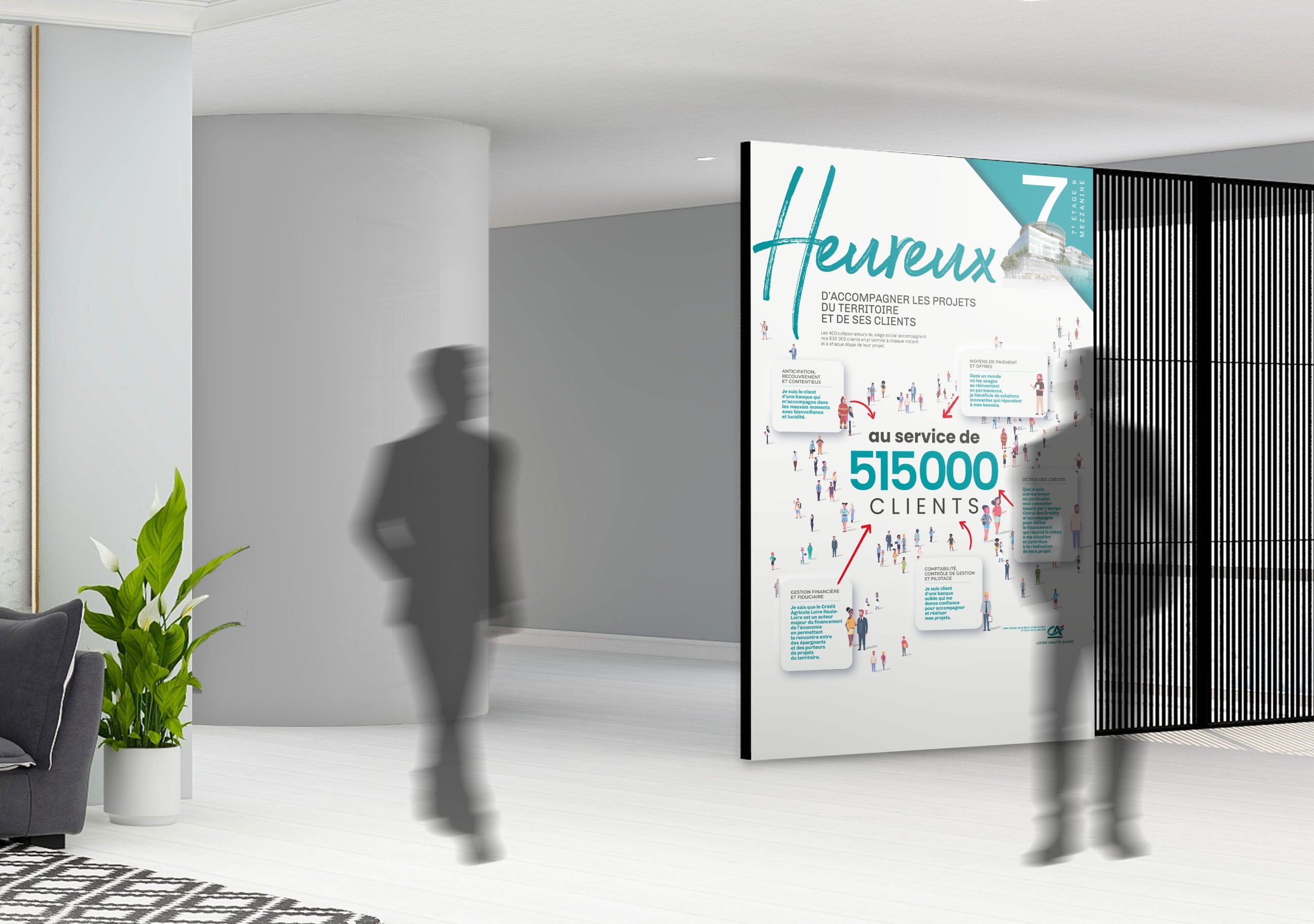 32 Décembre assure la création globale du synoptique de visite des deux sièges du Crédit Agricole Loire Haute-Loire.