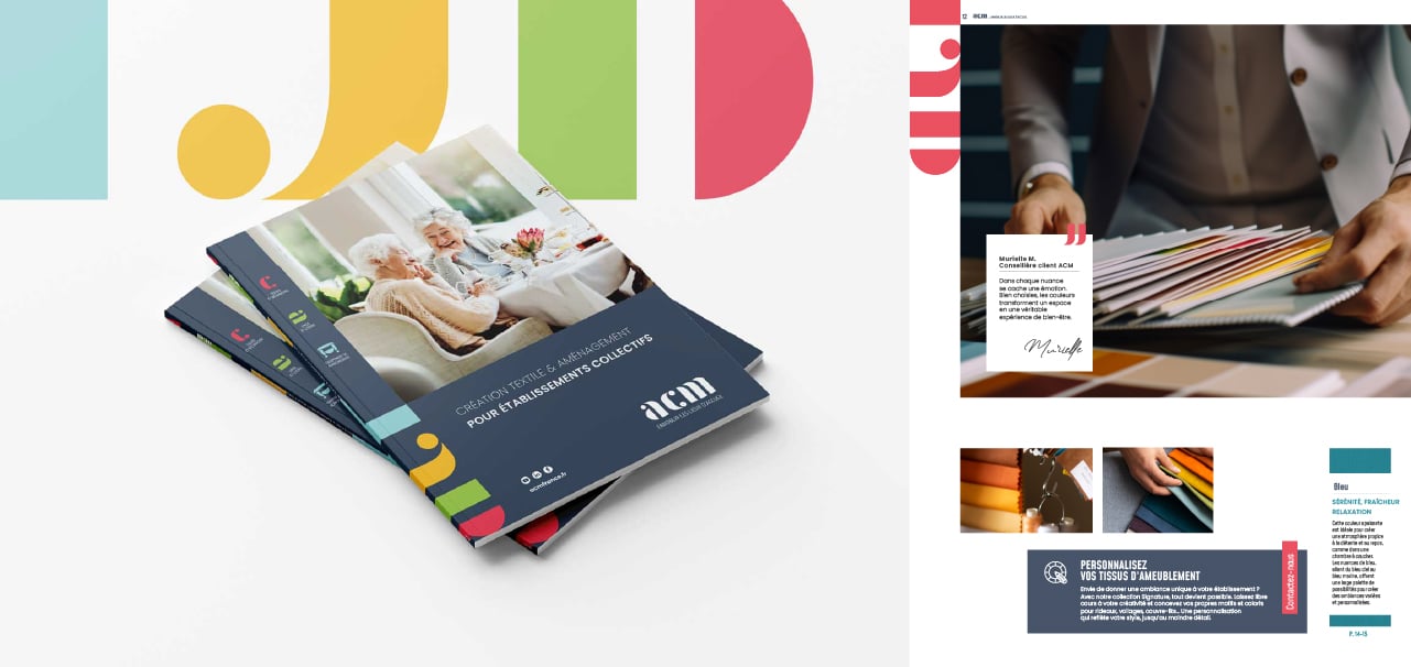 Au delà de la refonte graphique et visuelle du catalogue, l’agence a souhaité que la dimension experte, les équipes d’ACM, le conseil et la proximité soient clefs de voûtes de cette création print. Derrière les produits, la mise en page du catalogue révèle les valeurs de l’entreprise.