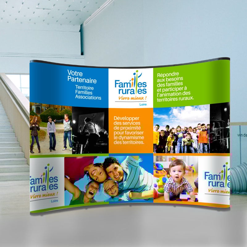 La fédération Familles Rurales 42 après nous avoir confié la conception de son rapport d’activité annuel met en charge l’agence 32 Décembre à Saint-Etienne de la conception du stand.