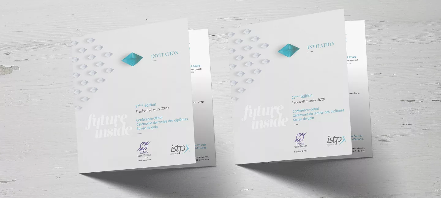 Dans l’esprit de la création de la carte de vœux 2020, 32 Décembre souhaitait positionner l’istp comme une école en marge, qui se différencie des autres. L’invitation arbore ainsi la même identité graphique que les voeux 2020. Nous travaillons une invitation en trois volets, épurée et emprunte de codes modernes. 32 Décembre enfonce le clou et rend l’événement Future Inside porteur. L’agence soigne le détail pour marquer l’événement et mettre en valeur les différents temps forts de la journée. Au fil des années l’événement Future Inside se positionne et devient un incontournable.