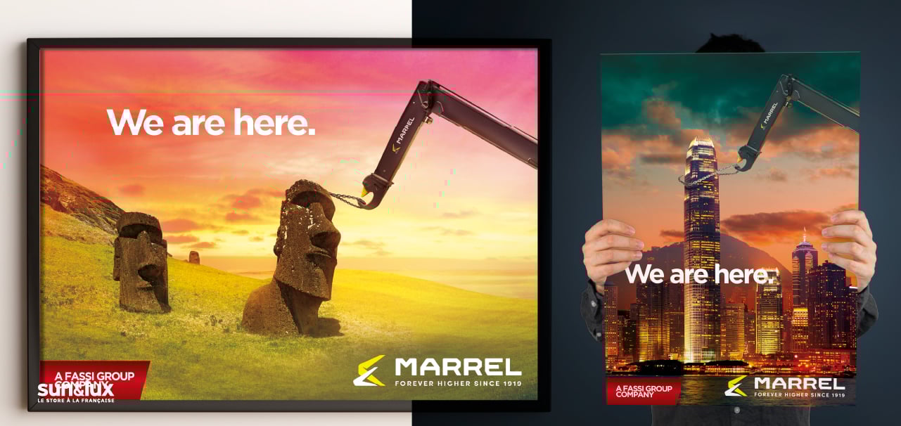 Dans nos échanges, Marrel reconnaît la nécessité d’une communication différenciante, pro-active et axée sur les réalisations récentes. L’agence propose une série de visuels institutionnels authentiques, soulignant l’implantation internationale poussée par le groupe Fassi, la puissance et la robustesse des équipements. Marrel se réinvente avec audace et détermination. L’entreprise, guidée par son nouveau discours de marque, se démarque et aspire à conquérir de nouveaux sommets tout en restant fidèle à son héritage. « Forever Higher since 1919 », c’est la promesse d’une marque prête à écrire son avenir, à la fois solide, efficace et résolument tournée vers l’avenir. Marrel est là, prête à soulever de nouvelles perspectives, à défier les attentes et à laisser son empreinte dans l’industrie du levage sur camion.