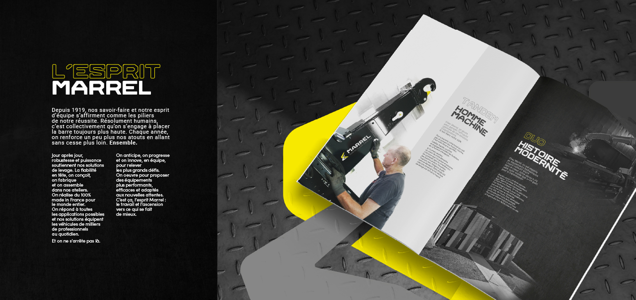 Les ateliers collaboratifs ont été riches, fédérateurs, nous avons écouté, poussé et fédérer autour de la mission Marrel. Des éléments traditionnels ont été préservés, mais revitalisés pour s’adapter aux marchés contemporains. La simplicité et la performance des équipements Marrel brillent désormais au cœur d’une image de marque qui évoque puissance et durabilité. La puissance des bras de levage Marrel est aussi indéniable que reconnue, tout comme la qualité de fabrication et la fiabilité qui font la renommée de la marque. Robustesse, fiabilité, fabrication française et maîtrise complète du processus de production en interne ont été soulignées pour renforcer le positionnement de Marrel sur le marché.