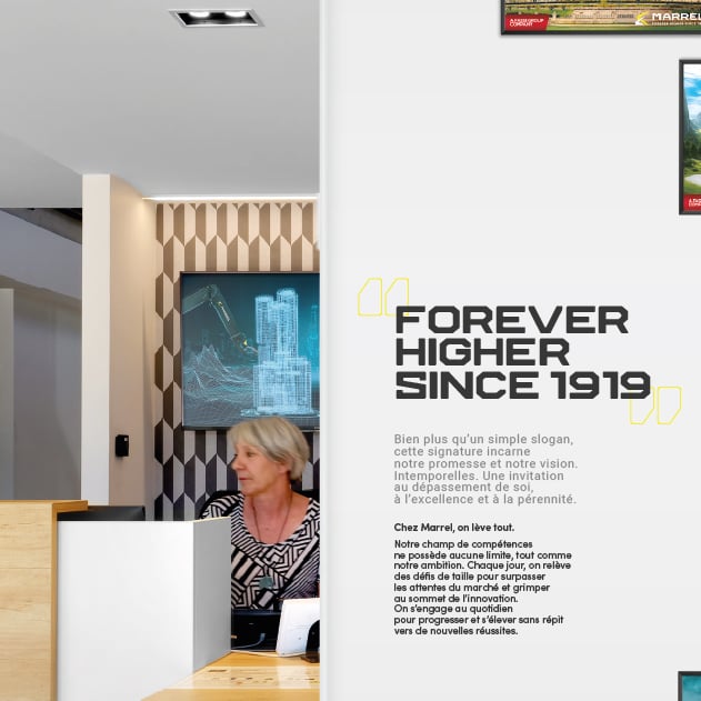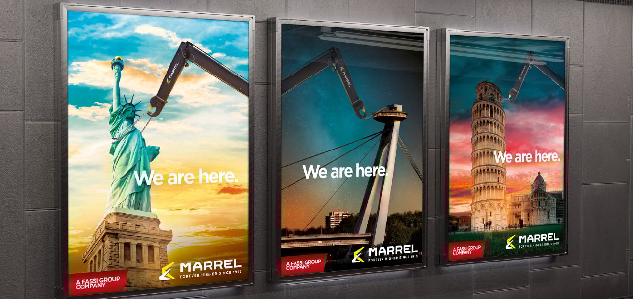 Dans nos échanges, Marrel reconnaît la nécessité d’une communication différenciante, pro-active et axée sur les réalisations récentes. L’agence propose une série de visuels institutionnels authentiques, soulignant l’implantation internationale poussée par le groupe Fassi, la puissance et la robustesse des équipements. Marrel se réinvente avec audace et détermination. L’entreprise, guidée par son nouveau discours de marque, se démarque et aspire à conquérir de nouveaux sommets tout en restant fidèle à son héritage. « Forever Higher since 1919 », c’est la promesse d’une marque prête à écrire son avenir, à la fois solide, efficace et résolument tournée vers l’avenir. Marrel est là, prête à soulever de nouvelles perspectives, à défier les attentes et à laisser son empreinte dans l’industrie du levage sur camion.