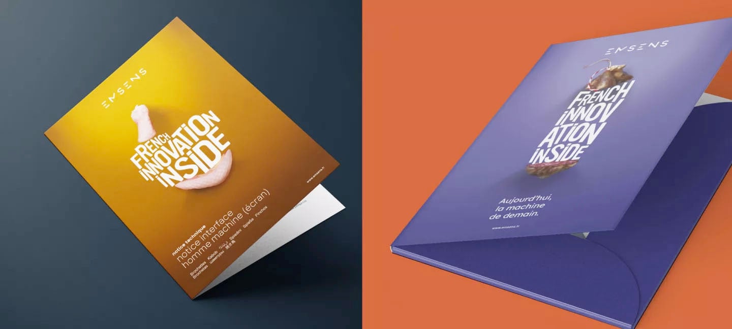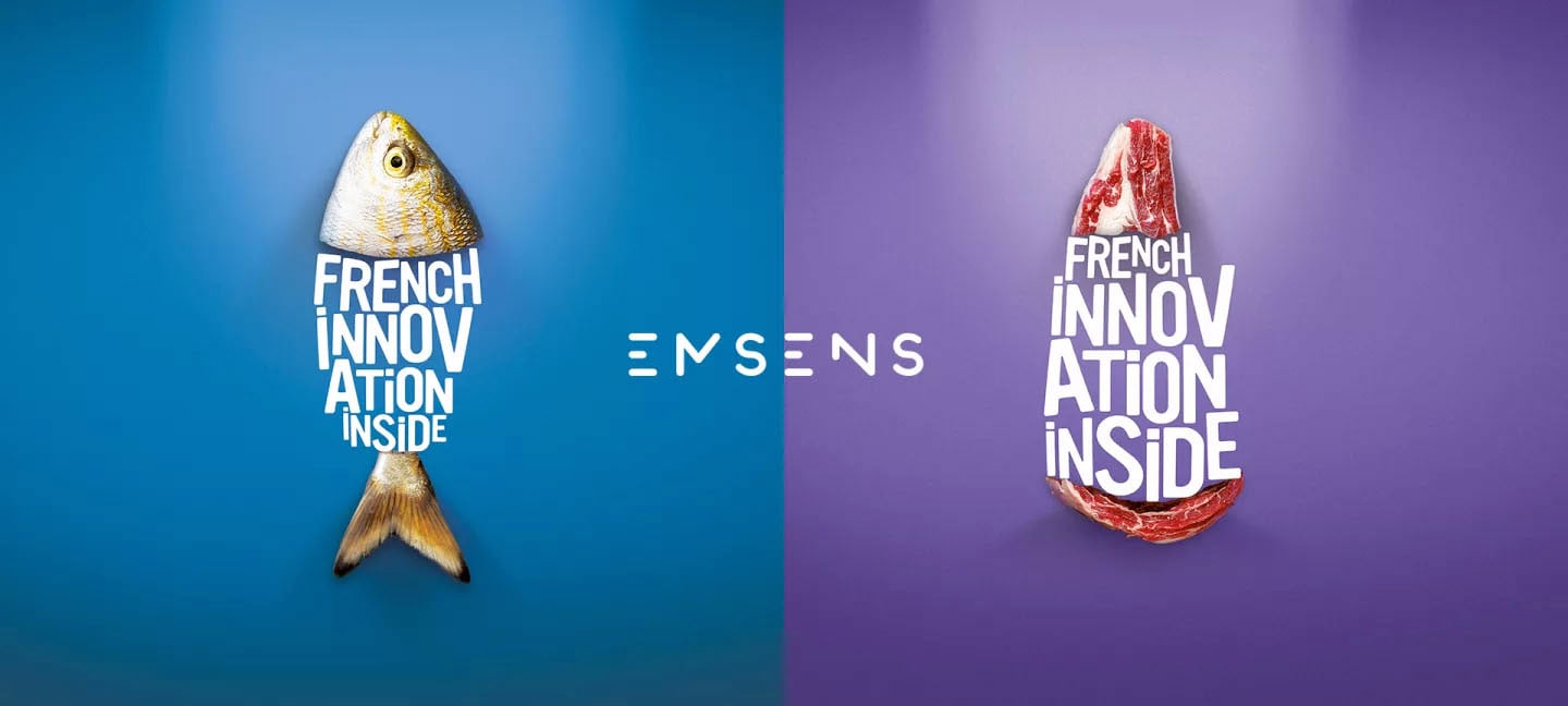 Visuels pop, création punchy, travail graphique enjoué… Et clou du spectacle, la viande, le poisson, la volaille, le fruit, fromage ou légume brillent par leur absence… Travailler des visuels dans le monde de la découpe carnée sans une goutte de sang ou de visuels « bidoche » était un pari conceptuel et graphique… Coupés à la perfection qu’il a été par la « French Innovation Inside », les visuels sont éloquents, ces derniers dénotent sur les stands des salons professionnels, recueillent les félicitations de la profession. Emsens marque, Emsens se démarque. Et quel plaisir d’aller chasser avec ce fier « french innovation inside » sur les terres du rosbif anglais ou du jamon ibérico.