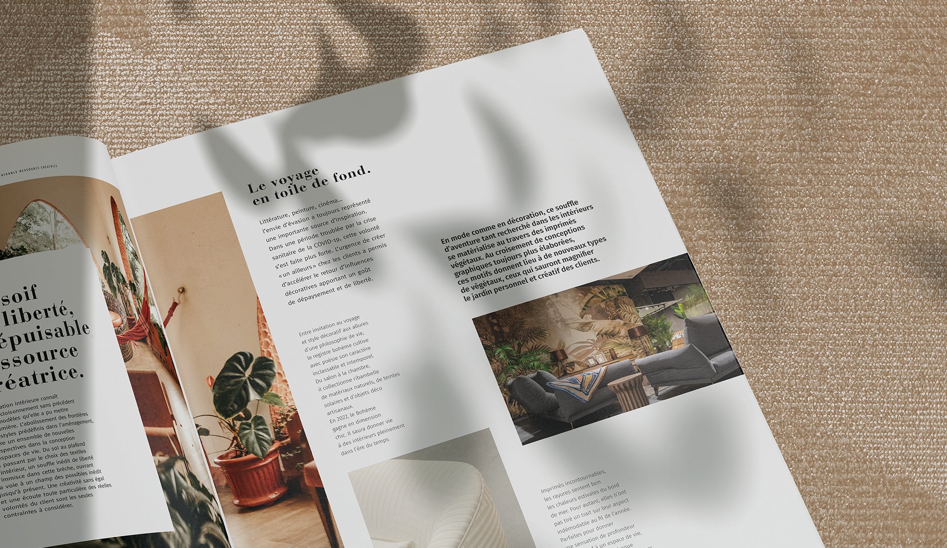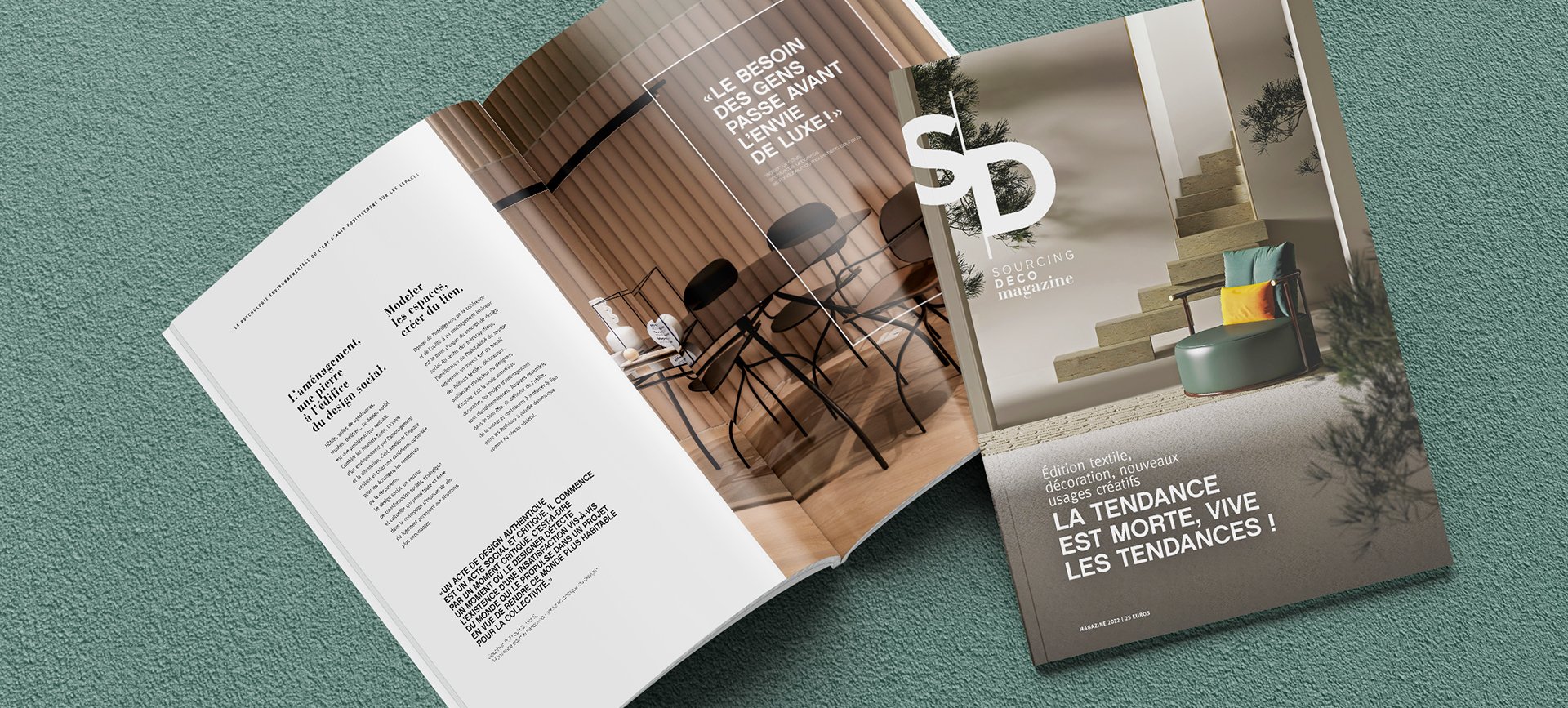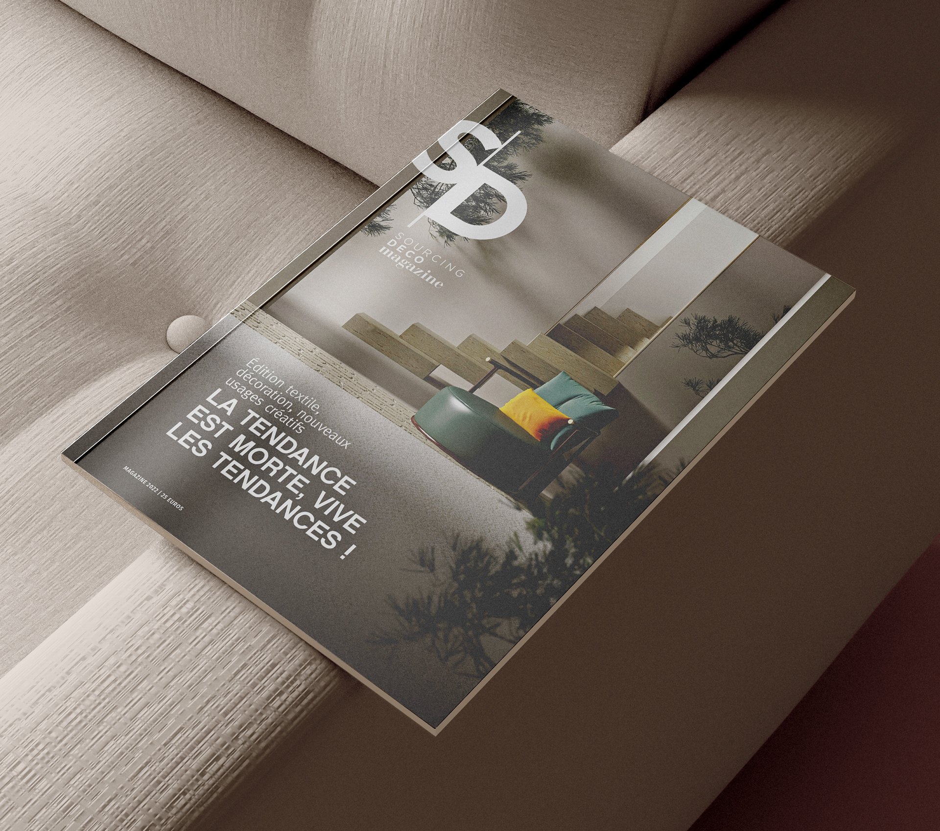 Dans la lignée du repositionnement de la marque SourcingDéco, 32 Décembre assure la création graphique, la rédaction et la mise en page du magazine tendance déco de la marque. Présenté lors du salon de Lyon, début février 2022, ce magazine b to b met à l’honneur les métiers de l’édition textile et se positionne d’ores et déjà comme le magazine de référence de la profession.