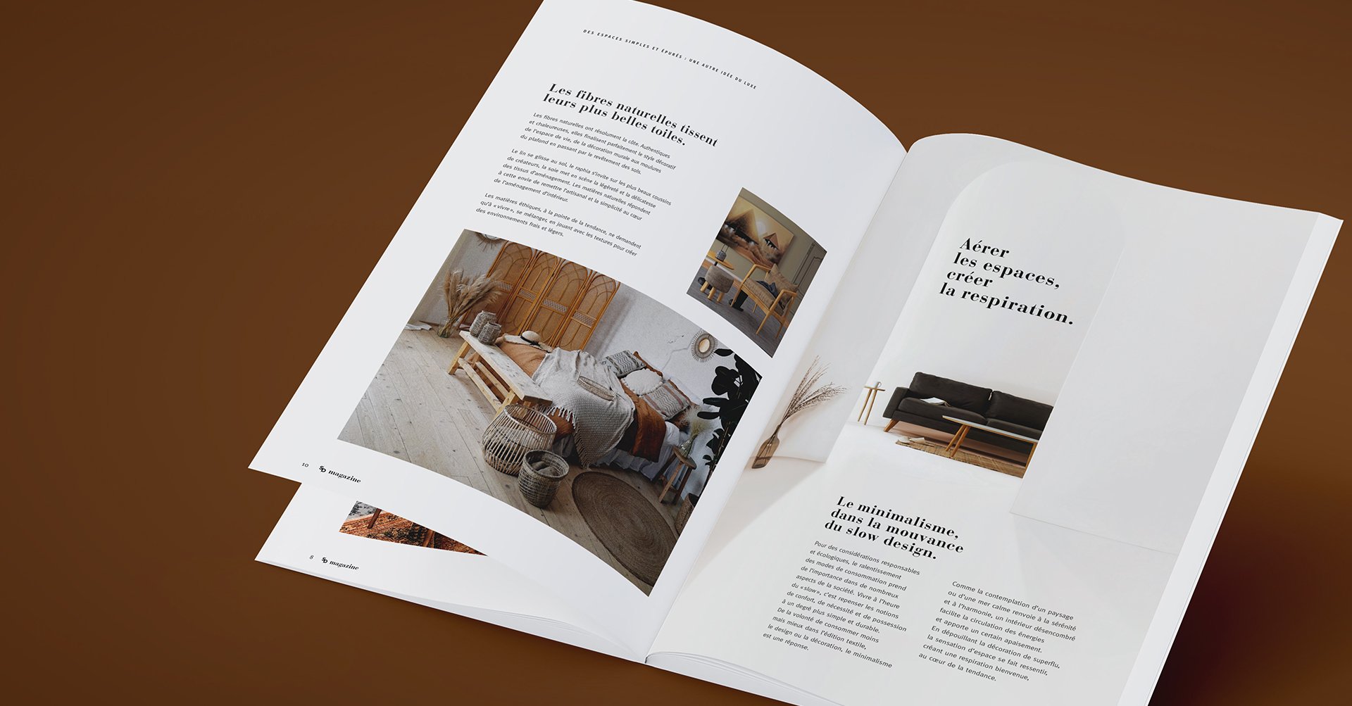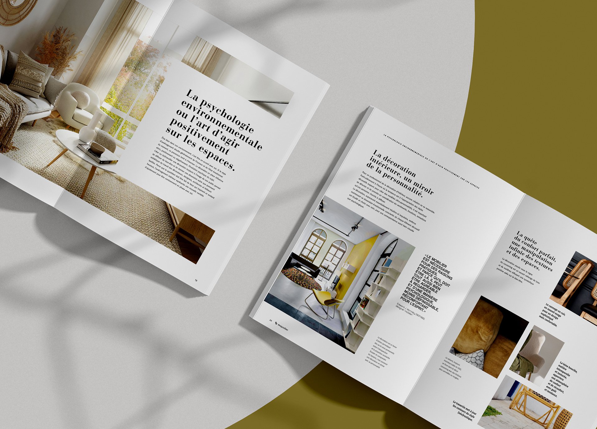 Créativement, l’agence voulait marquer le coup. Mise en page aérée, aérienne, choix typographiques forts, direction artistique fine, rédaction soignée par nos soins et choix iconographique iconique, le magazine SourcingDéco met les petits plats dans les grands. C’est un vrai plaisir pour notre agence de communication de créer de A à Z ce magazine, véritable ovni dans la profession.