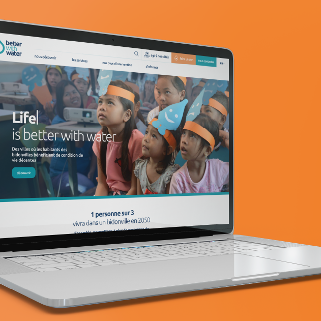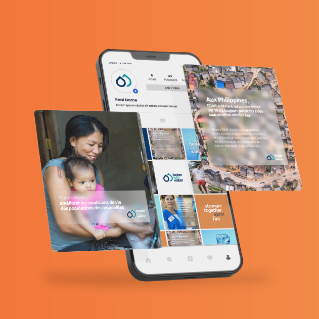 Depuis 2008, Eau & Vie œuvre au quotidien pour donner accès à l’eau potable dans les bidonvilles partout dans le monde. Une mission essentielle qui s’accompagne de missions transverses liées à la sensibilisation hygiène et incendie. À la fois ONG et entreprise sociale, Eau & Vie souffre d’un manque de reconnaissance et de clarté dans son identité. Eau & Vie en France, Water & Life aux Philippines et Bangladesh… Le discours se dilue autant qu’il y a de noms pour nommer de la structure. L’ONG souhaitait entrer dans une nouvelle ère et impulser une nouvelle dynamique à sa surface marketing pour franchir un palier dans la reconnaissance et la perception de son action.