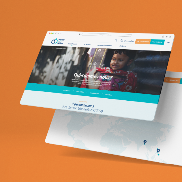 better with water s’assoit à la table des gouvernements, des organismes financiers et des pouvoirs locaux pour venir en aide aux bidonvilles dans le monde, la marque doit cultiver et porter son savoir-faire, et une puissance institutionnelle reconnaissable. Pour asseoir l’identité de better with water, 32 Décembre a élaboré une charte graphique solide. Elle guide la création de supports de communication, tout en offrant une certaine flexibilité pour s’adapter aux diverses situations et messages. La charte graphique assure une cohérence visuelle, renforçant la reconnaissance de better with water à travers le monde.