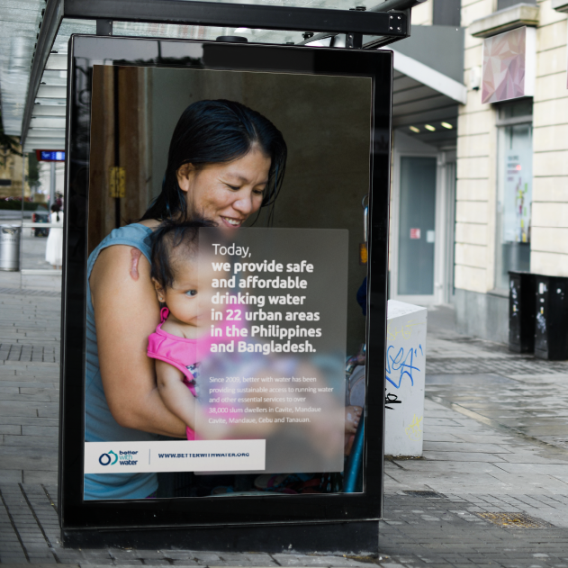 L’ONG est bien plus qu’un fournisseur de services d’eau. Ses deux parties essentielles, ONG + entreprise sociale, couvrent un large panel de missions allant de l’approvisionnement en eau aux campagnes de sensibilisation. Compte tenu des enjeux et suite à un travail en profondeur avec les équipes France, Philippines et Bangladesh, l’agence prend le parti de redéfinir la marque avec comme défi : adopter une approche globale, mais aussi être perçus comme une unité opérationnelle.