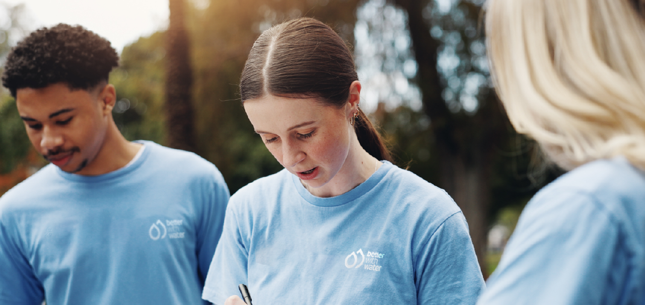 Dans son expression graphique, nous jouons de visuels clés à la résonance forte et impactante. Nous jouons à la fois de visuels « terrains », témoignant de l’engagement sur le terrain au quotidien, mais aussi de visuels clés plus » marketés » pour apporter une plus large expression de marque. La communication institutionnelle se démarque en optant pour des visuels uniquement composés d’eau, se suffisant à eux seuls pour transmettre des messages forts.