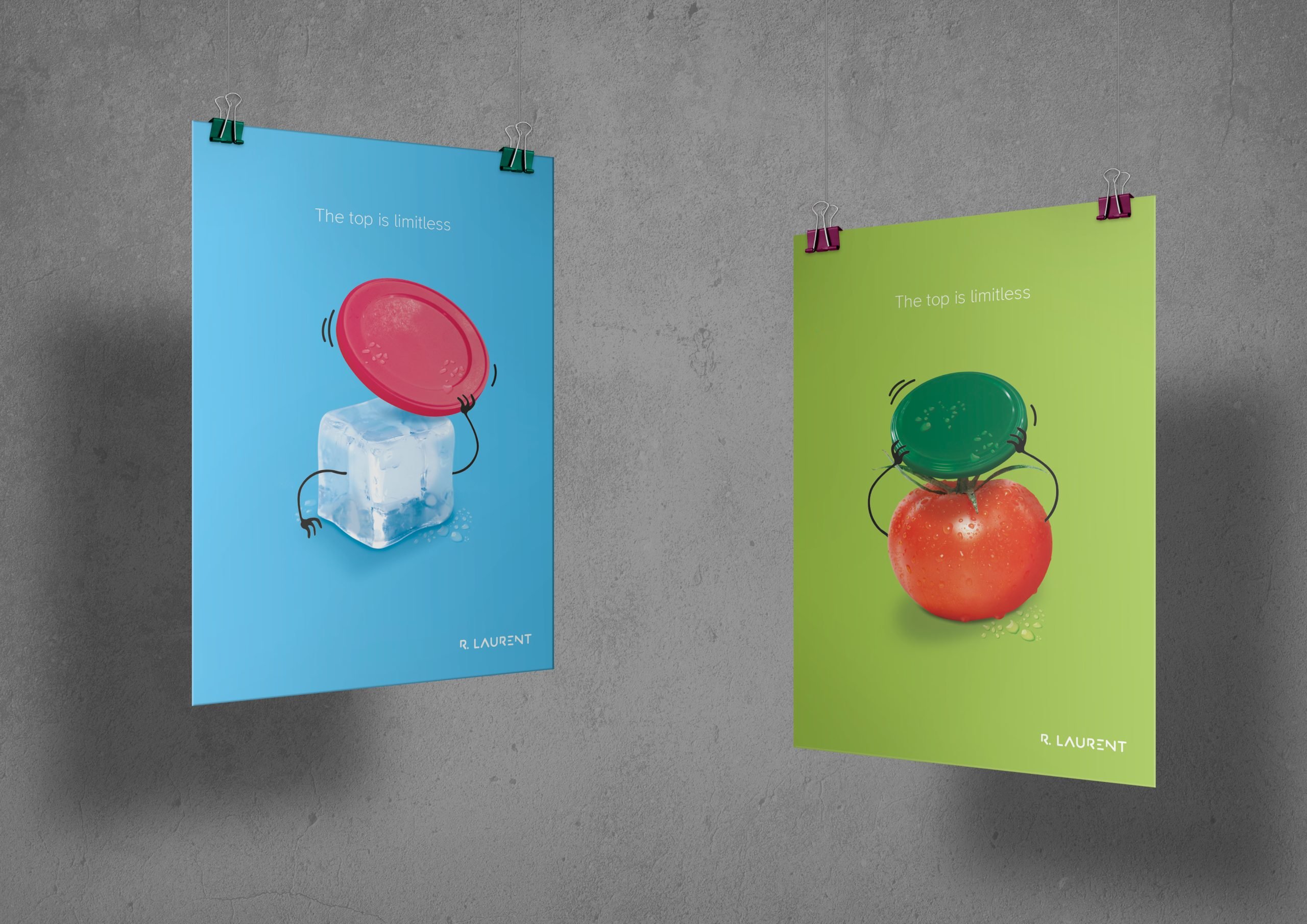 Dans le cadre de la reprise de la société et son intégration au groupe Machinext, R Laurent revoit tout sa communication b to b et décide de travailler avec nous l’expression de sa singularité. L’agence prend le parti de conceptualiser le métier et de promouvoir des visuels clef autour de l’adn de la marque : la créativité industrielle autour du couvercle. Pour illustrer le positionnement, le slogan « The top is limitless » signe la campagne et illustre le nouveau positionnement du discours de marque.