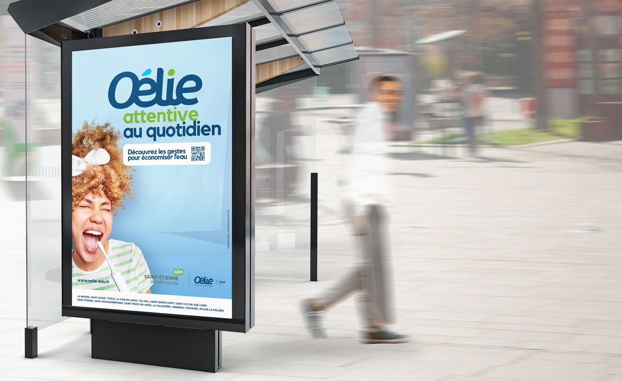 Sujet phare de la candidature pour le marché de l’eau potable de la métropole, la gestion de la ressource eau est un des piliers stratégiques d’Oélie et de Saur. La nouvelle marque de l’eau à Saint-Etienne marque ainsi son territoire et sa volonté de se positionner, d’agir sur les sujets de société. L’agence signe une campagne à visage humain, une campagne interpellante et relayée sur tous les réseaux de l’agglomération (abribus, flan de bus, communication sociale…)