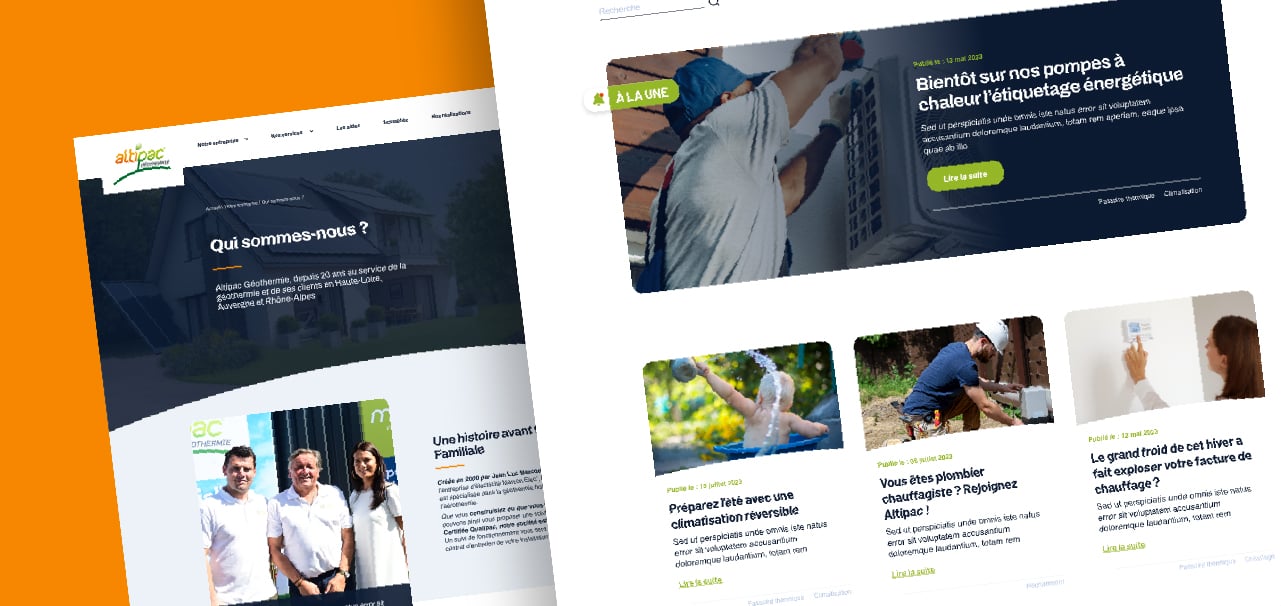 Client historique de notre agence, Altipac Géothermie, le spécialiste pompe à chaleur et clim en Auvergne Rhône-Alpes, s’offre une nouvelle beauté avec la refonte de son site internet. Une réflexion de fond menée par notre agence qui dépasse le cadre unique du look pour se loger dans la stratégie digitale, le design, les fonctionnalités et de l’UX.