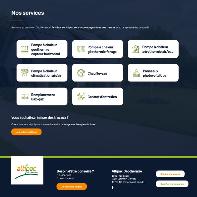 Altipac Géothermie avait besoin de redonner un nouvel élan à sa communication digitale et coller aux attentes de sa clientèle qui souhaite accéder aux offres et aux aides de manière plus rapide.