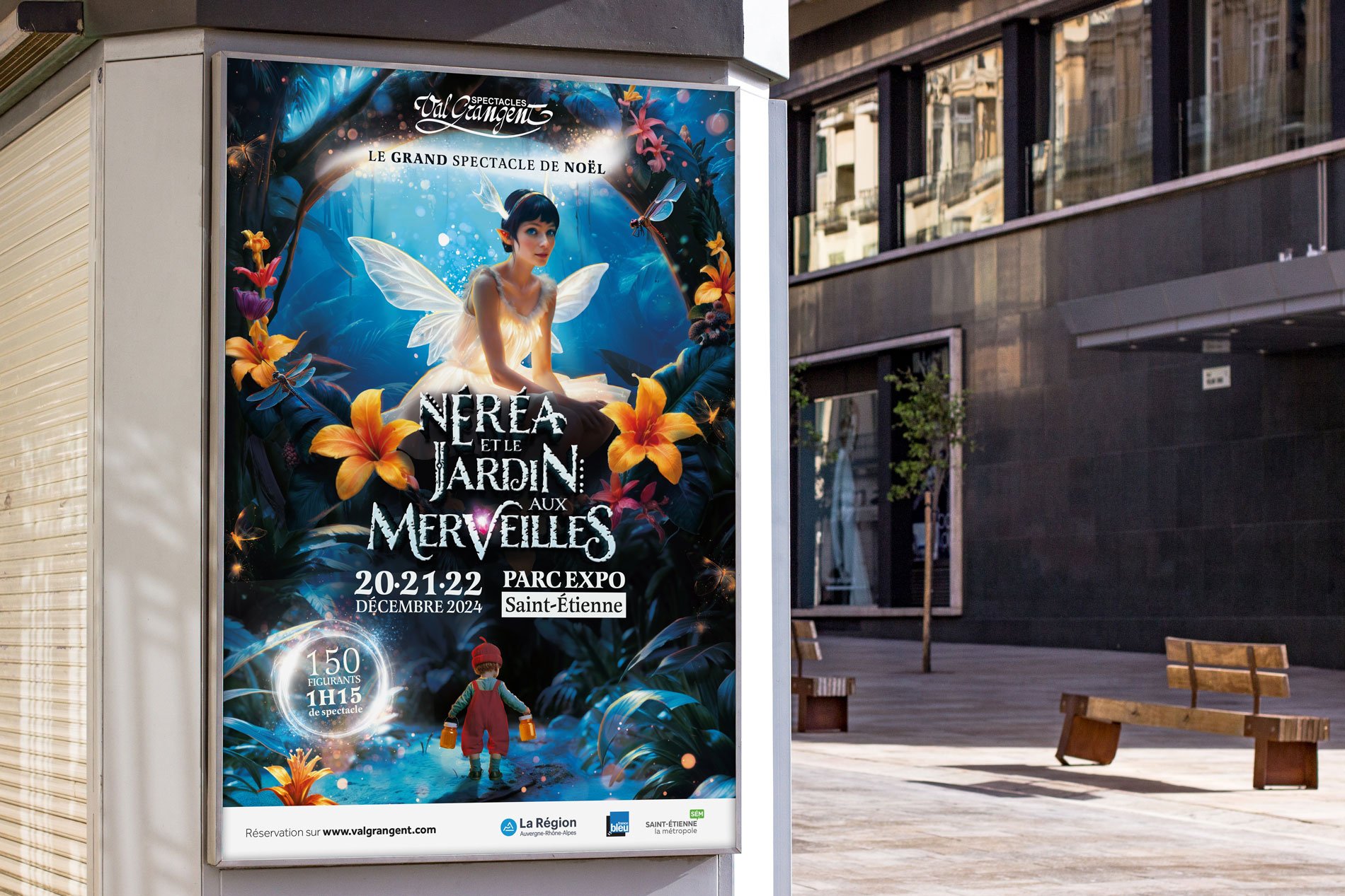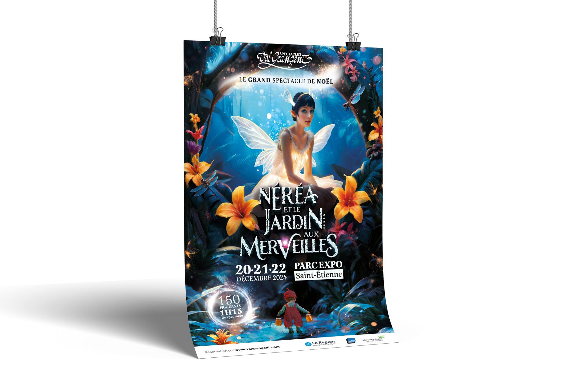 Spectacle incontournable de la période des fêtes, Val Grangent s’impose dans le paysage événementiel comme une date qui compte pour les grands comme les petits. Riche en émotions, puissant en mise en scène, le spectacle qui rassemble quelques 250 bénévoles, découvre sa nouvelle thématique avec Néréa et le Jardin aux Merveilles. L’agence signe un visuel onirique, immersif et poétique dans un jeu de plans et de lectures. Féérique et magique, l’édition 2024 promet un beau feu d’artifice.